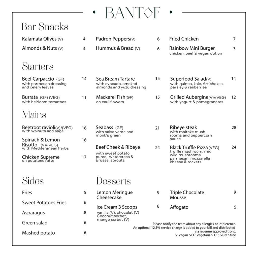 Bantof’s menu features a series of signature dishes designed to be enjoyed via tasting plates supporting the restaurant’s relaxed and collaborative vision. Under the expert guidance of Chef Pierre Iskandar, whose culinary experience spans three decades, each dish is a testament to his mastery, blending flavors seamlessly and inviting guests on a gastronomic journey like no other. Bantof’s innovative cocktails menu, dreamt up by SuperNacular and headed by Jack Sotti (a regular on Channel 4’s Sunday Brunch), offers an exciting mix of new and classic cocktails with a twist. Complementing the extensive cocktail list is a comprehensive selection of champagne, wine, tea, and coffee.