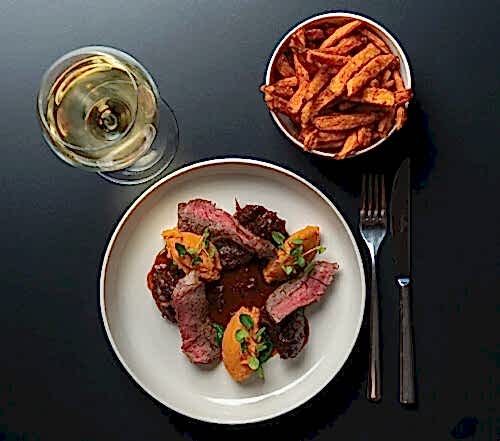 - Beef cheek ribeye with sweet potato puree Black Truffle Pizza