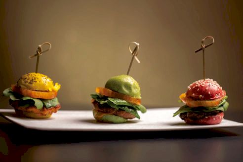 - Rainbow Mini burgers: chicken, beef and vegan option